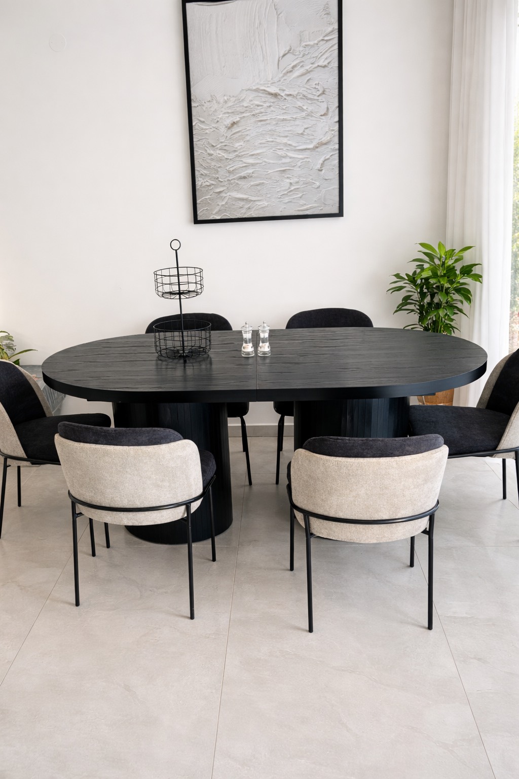 שולחן Noir מציג נוכחות דרמטית ומוקפדת – עם עיצוב בגווני שחור עמוק, קווים מעוגלים ובסיס כפול במראה פיסולי. הבחירה המושלמת למי שמעריכים עיצוב מוקפד ואלגנטי.